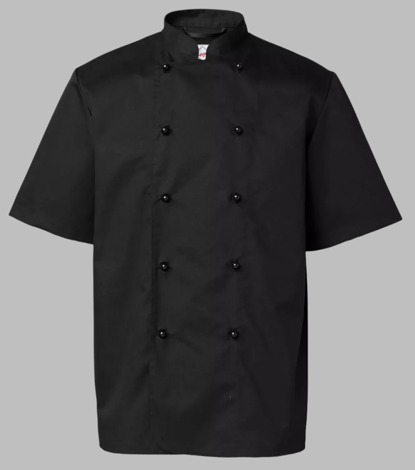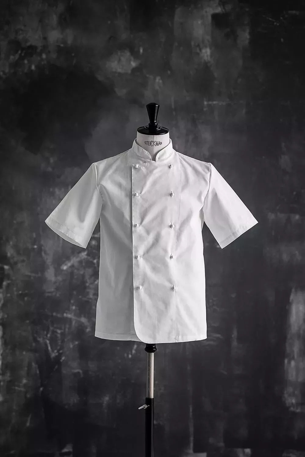 Kockrock i klassisk dubbelknäppt rak modell med kort ärm till herr