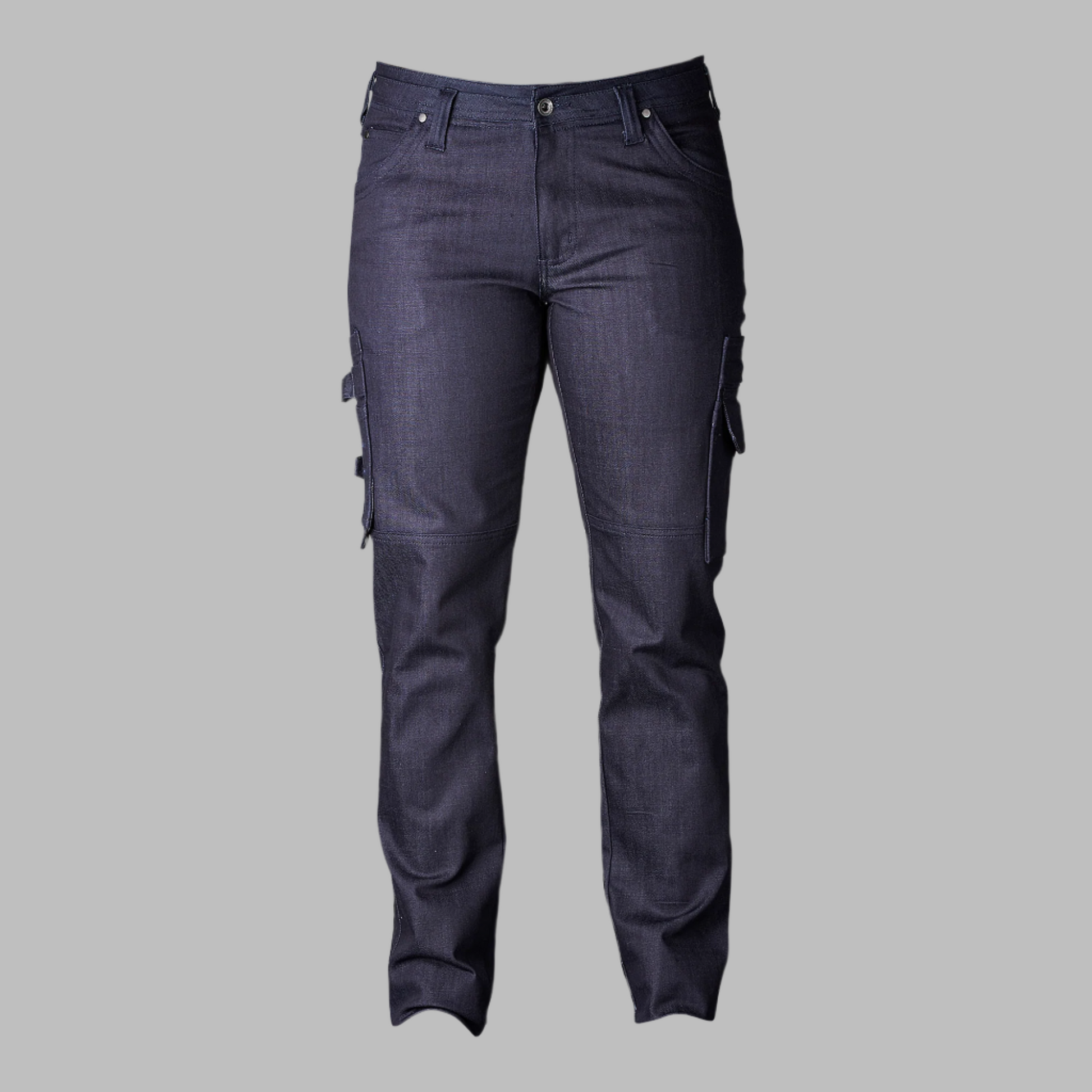 Två framfickor. Två bakfickor. Två benfickor, En tumstocksficka. Telefonficka. Pennfack. Förböjda ben.