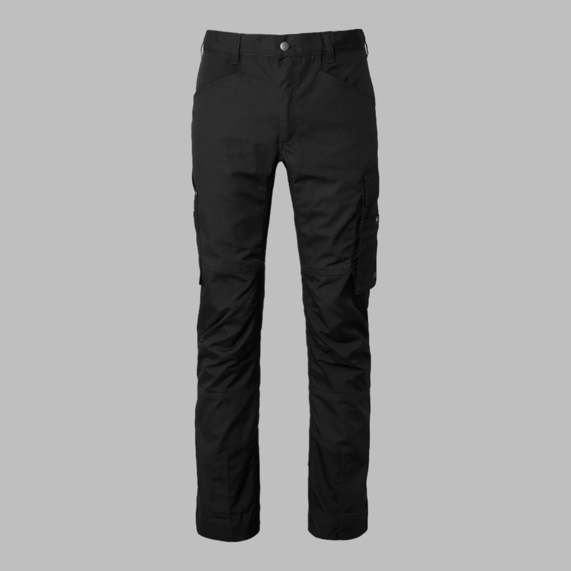 Arbetsbyxa i modern passform av lätt och slitstarkt material med stretchfunktion för ökad rörlighet på utvalda partier. Många rymliga och praktiska fickor, tumstocksficka och benficka för mobil samt knäskyddsfickor med två nivåer och extra förstärkningar på utsatta delar. Reflexdetalj på vänster ben. Förlängningsmöjlighet (5 cm) i benavslut.