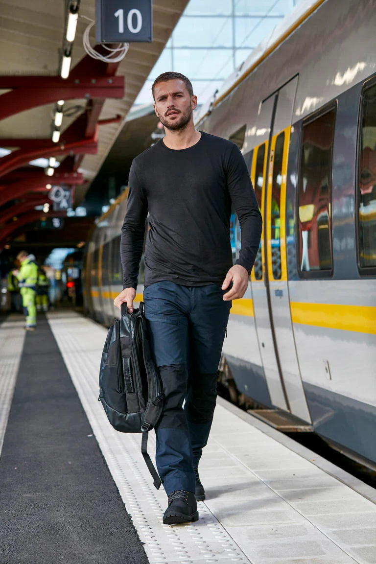 Praktisk arbetsbyxa i modern passform av slitstarkt material med stretchfunktion för ökad rörlighet på utvalda partier. Flera rymliga och praktiska fickor. Smidig förlängningsmöjlighet (5 cm) i benavslut.